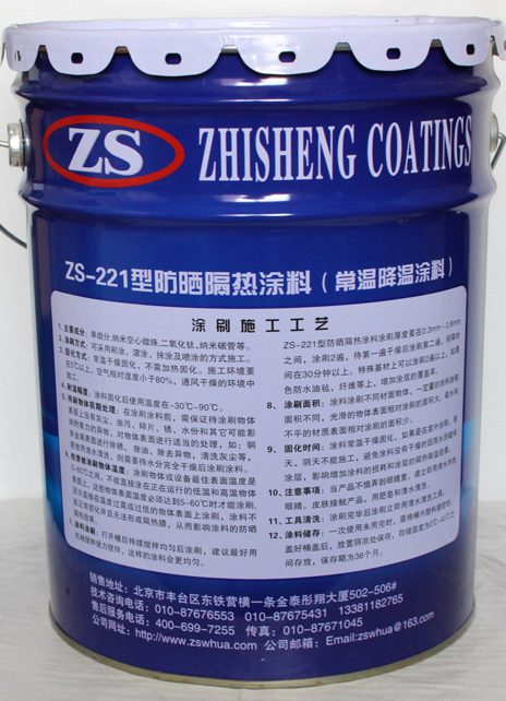 ZS-221防曬隔熱涂料可廣泛用于建筑、化工、石油、電力、冶金、船舶、輕紡、儲(chǔ)存、交通、航天等行業(yè)上降溫,節(jié)約能源,創(chuàng)造舒適清涼的人類生活、工作環(huán)境。